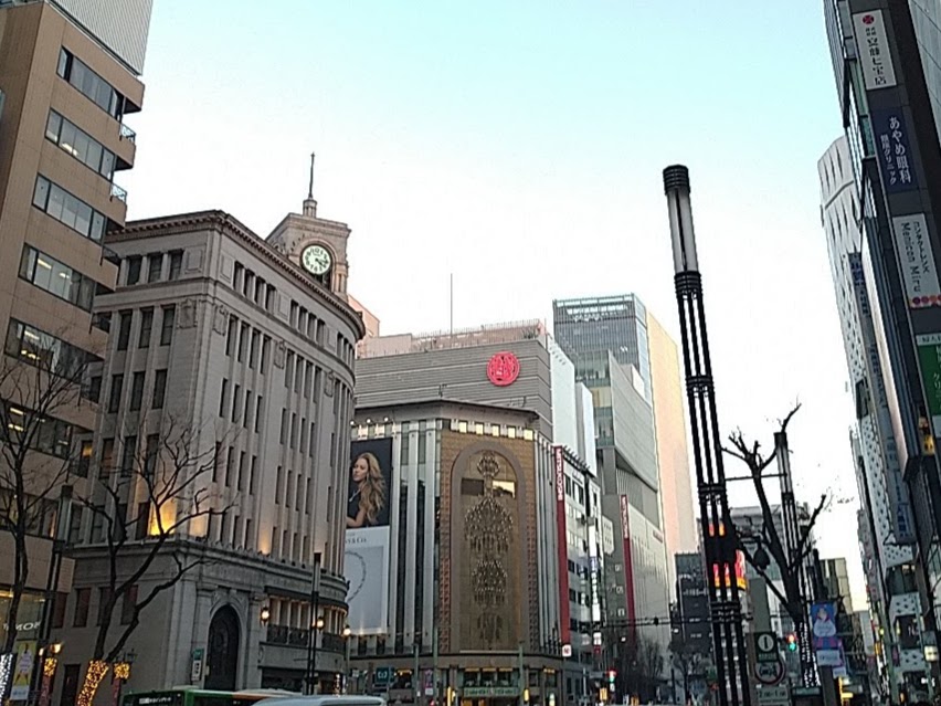 「銀座」駅で降りるとあてもなくブラブラ。まだ夕方なのにクリスマスの飾りがキラキラと光っています。