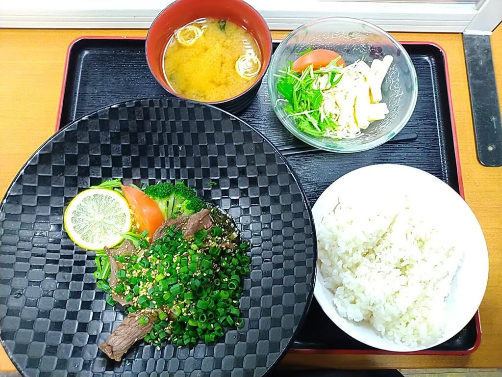 わたしはずっと気になっていた「牛タンステーキ御膳」を注文。そのお値段は1,380円! 勝負日だからこそ頼める値段です。